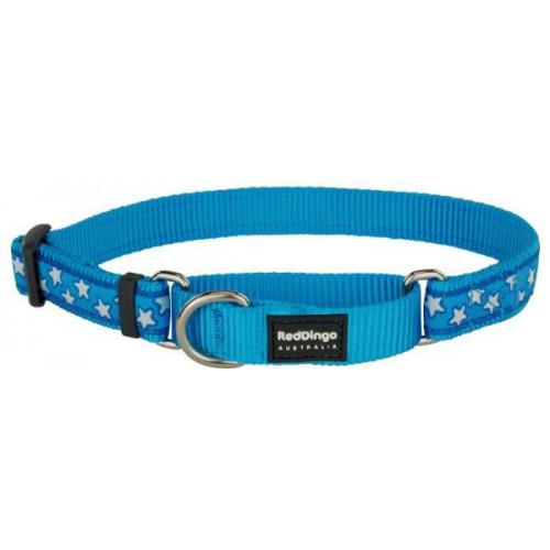 Red Dingo obojek polostahovací se vzorem 41 - 62 cm - Stars White on Turquoise