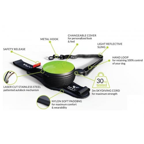 LISHINU Original je první inteligentní hands-free vodítko na světě. Ať půjdete s pejskem sportovat nebo nakupovat, ruce budete mít stále volné. Vodítko máte na zápěstí, lanko se samo odvíjí a navíjí a váš pes jde vedle vás.